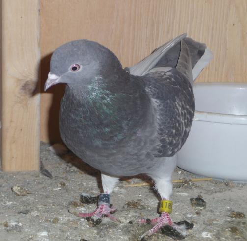 پس رنگ قرمز در کبوتر چیست؟ اجازه بدهید با کبوترهای ایرانی شروع کنیم. برای مثال یک پیس دو خط را در نظر بگیرید. چه میبینید؟ اول از همه طرح یا نقش آن شبیه به کبوتر سبز است یعنی دو خط بر روی بالها دارد. رنگ خطهای روی بالها قرمز آجریست که با رنگ خط روی دم فرق میکند (اگر دم و بالها دارای یک رنگ باشند آنوقت پیس شما قهوهای است نه قرمز). رنگ خط روی دم خاکستری کمرنگ است که این رنگ را بر نوک شاهپرهها نیز میتوانیم ببینیم. در حالی که رنگ خطوط روی بالها قرمز آجریست. این دوگانگی رنگهای بالها و دم باعث شد که آقای Hollander. F. W به آن نام قرمز خاکستری (ash-red) بدهد، که علامت ژنتیکی آن BA است.