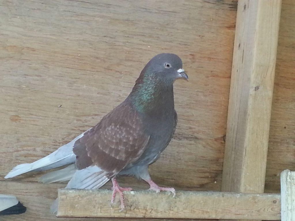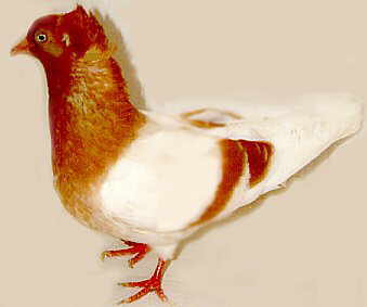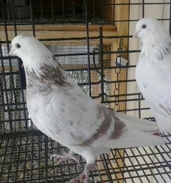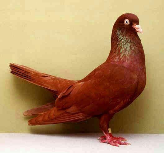 نکتهی مهم: در بعضی از کبوترها مشخص کردن رنگ کبوتر که آیا قهوهای یا قرمز است کار سادهای نمیباشد. مخصوصاً کبوترهایی که دارای زمینهی سفید هستند. به همین دلیل ما باید به دنبال نشانههای این رنگها بگردیم. در دو عکس بالا اگر به دمهای این کبوتران دقت کنید، میبینید که قهوهای دارای یک خط سرتاسری بر روی دمش است، در حالی که قرمز دارای دم یکرنگ و خاکستری است. در بعضی موارد فقط از طریق جوجهکشی میتوانیم رنگ کبوتر مورد نظر را پیدا کنیم.